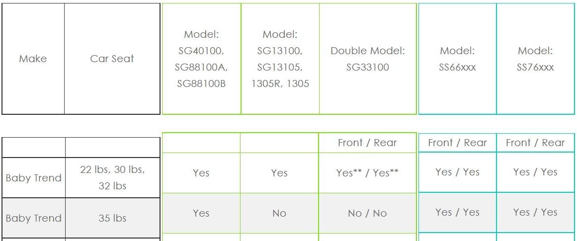• Accepts Baby Trend and most major brands of infant car seats (except Snap Fit or Snap Gear Models)