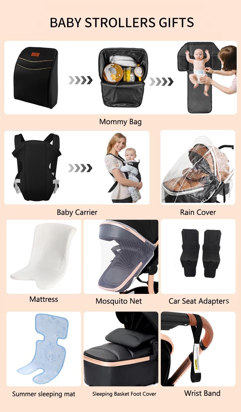 • 【Bidirectional Reversible Pushing Modes & Two Cover Modes】 This 3 in 1 newborn pram has bidirectional reversible pushing modes design to let your baby face externally and internally at your will, allowing you to effortlessly switch between forward-facing and parent-facing modes to suit your preference and keep an eye on your baby. Two cover modes of this 3 in 1 pram travel system include breathable mode and sunshade mode, providing your baby with an elevated view of their surroundings.