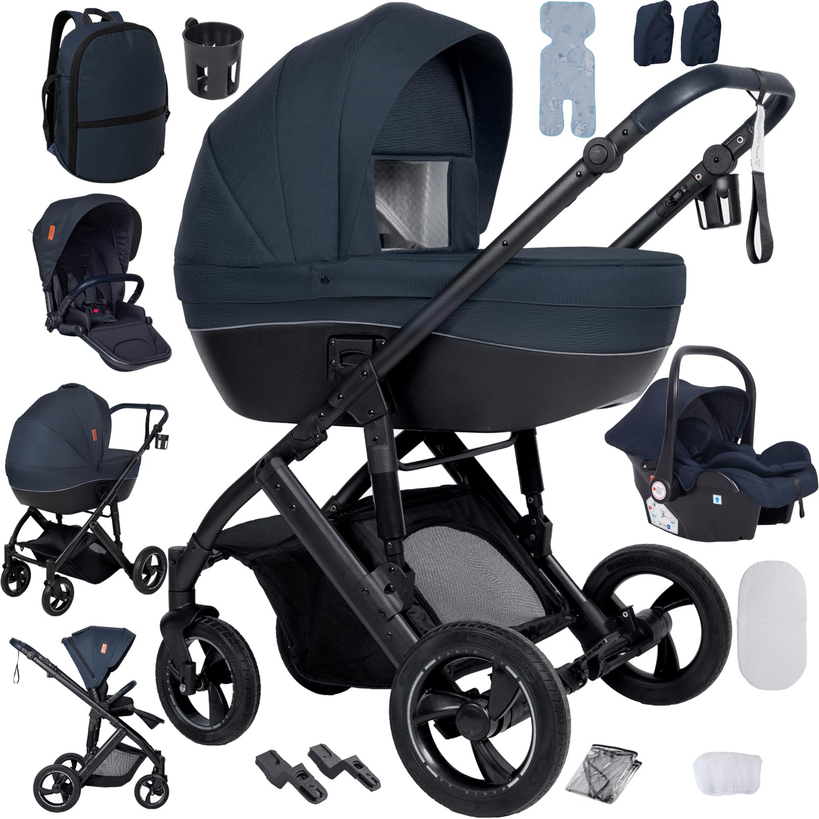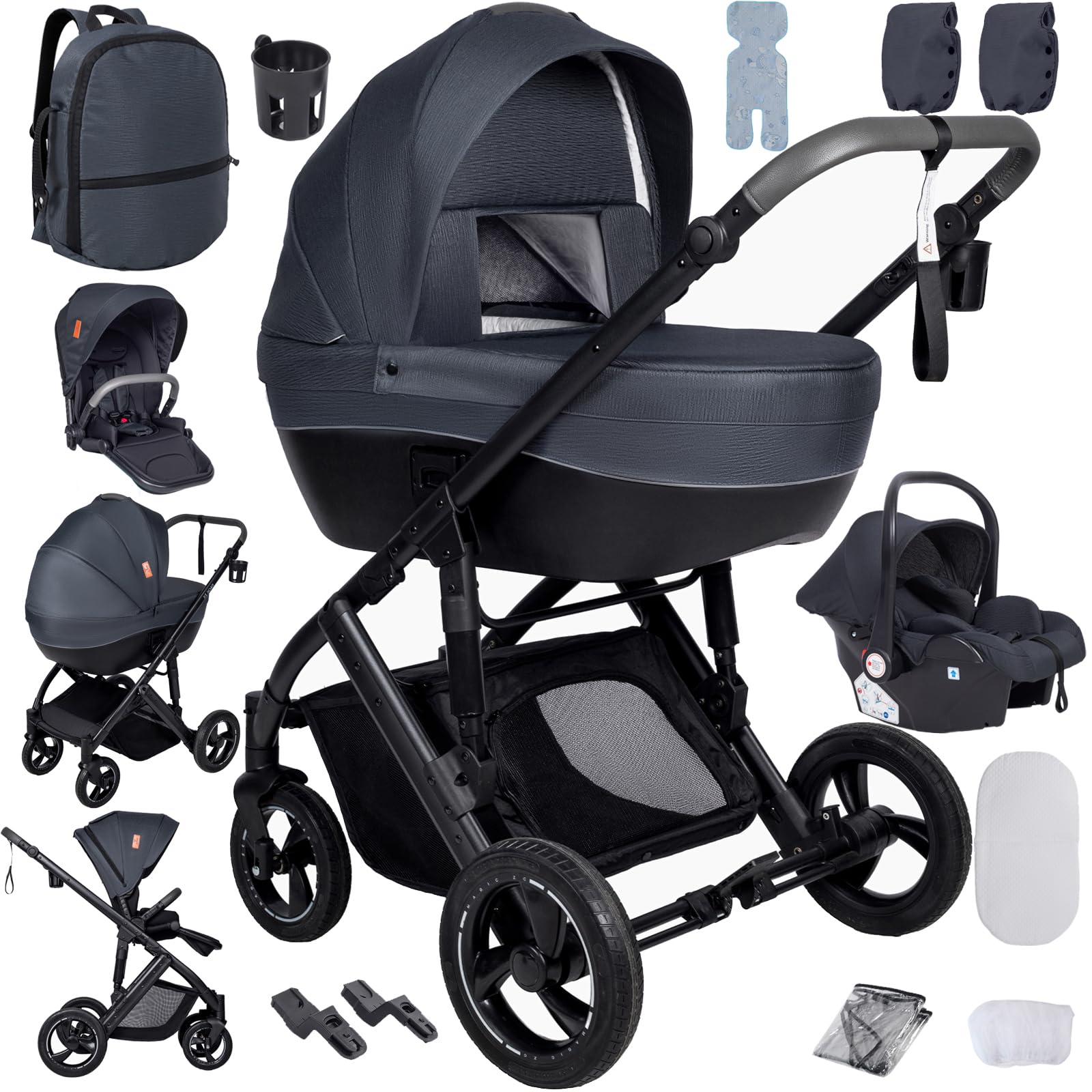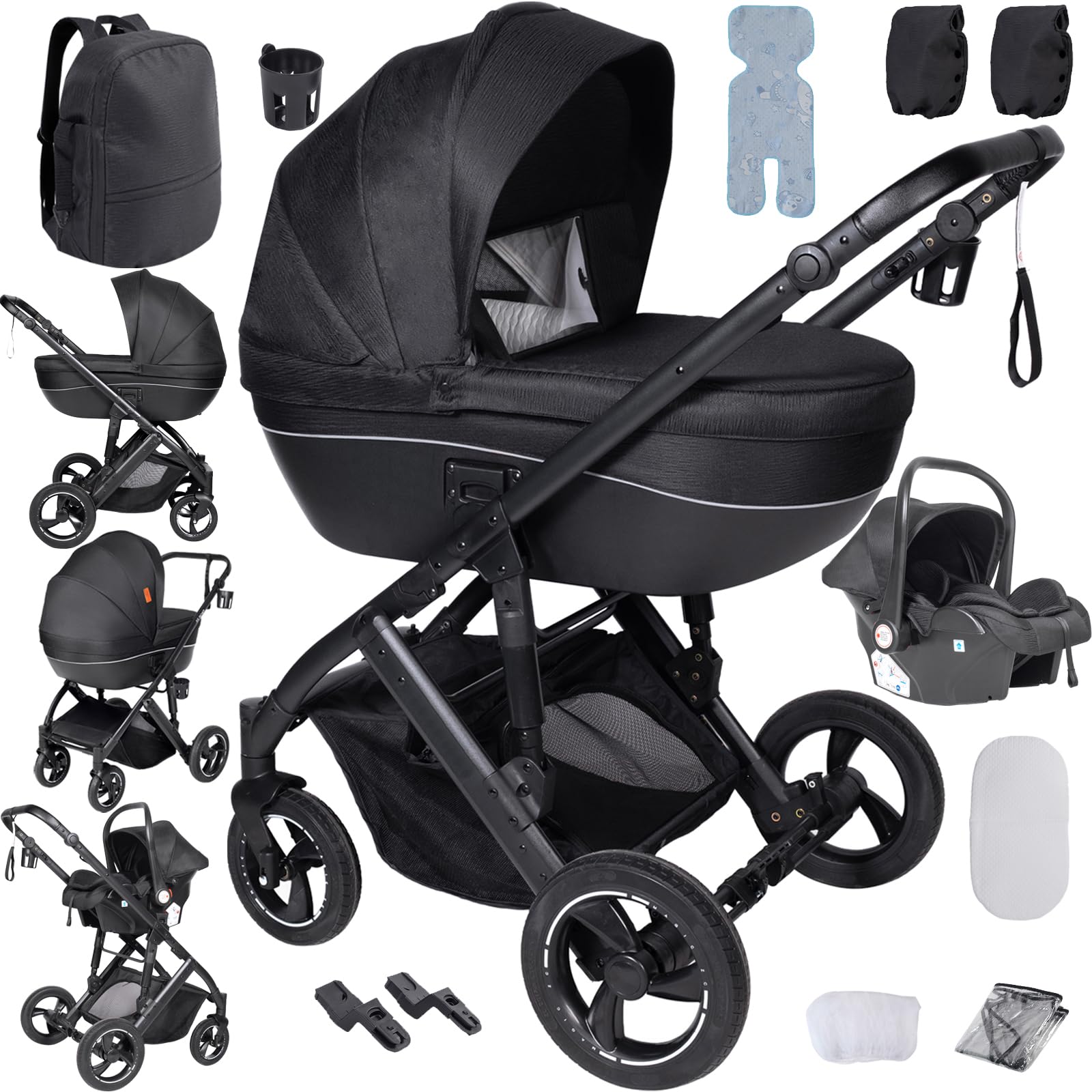 • 【Multifunctional 3 in 1 Pushchair Pram Travel System】 This baby stroller 3 in 1 offers versatility, seamlessly transformed to meet your baby’s changing needs as your baby grows. One baby pram 3 in 1 can play triple roles by easy transformations: sleeping basket, seat and carrycot.