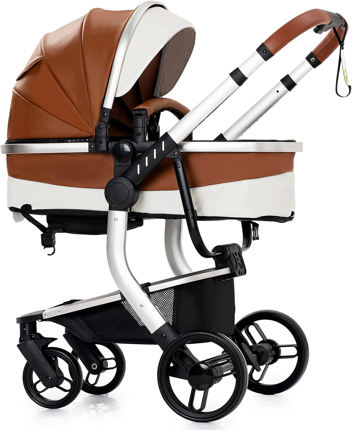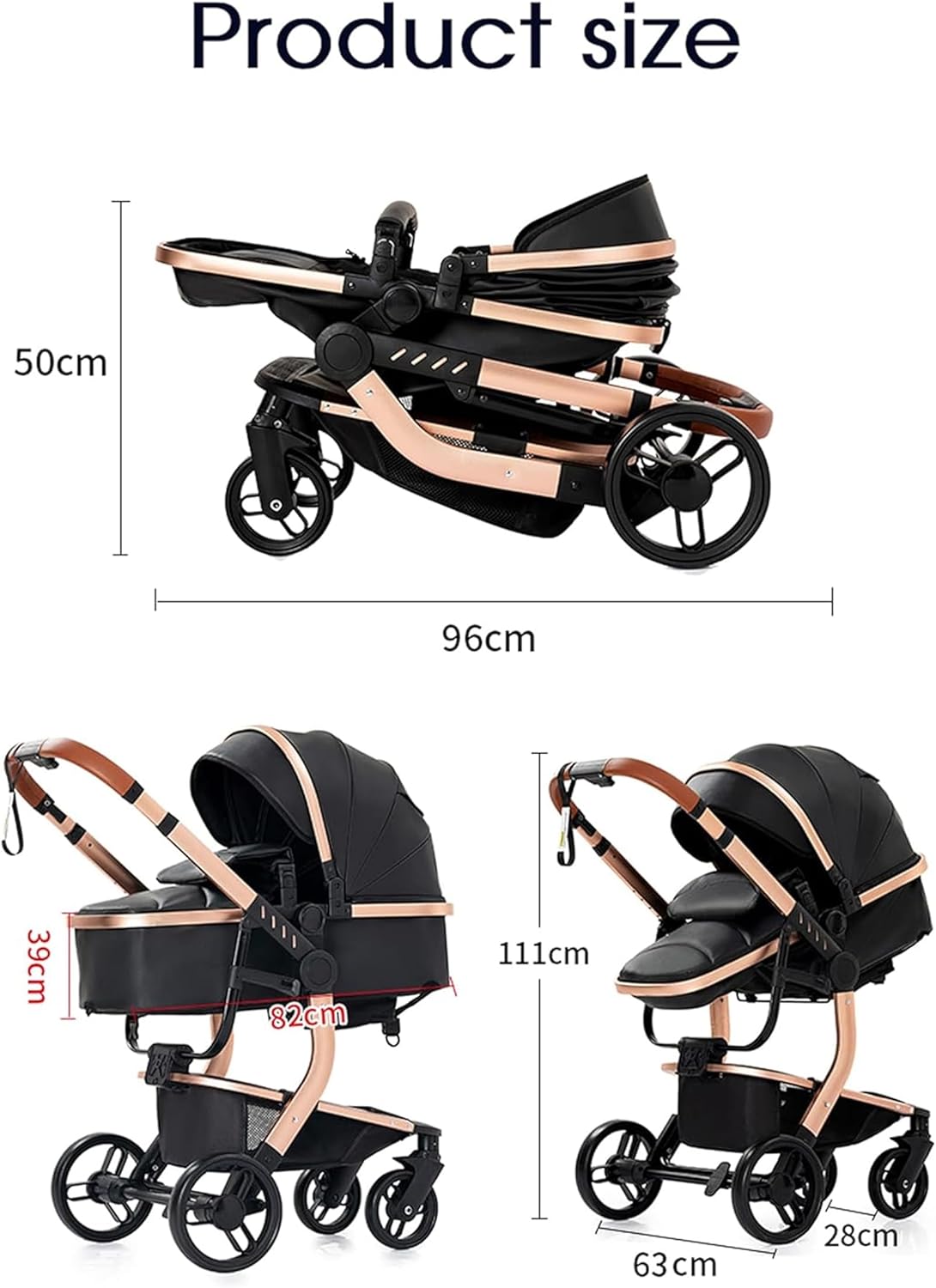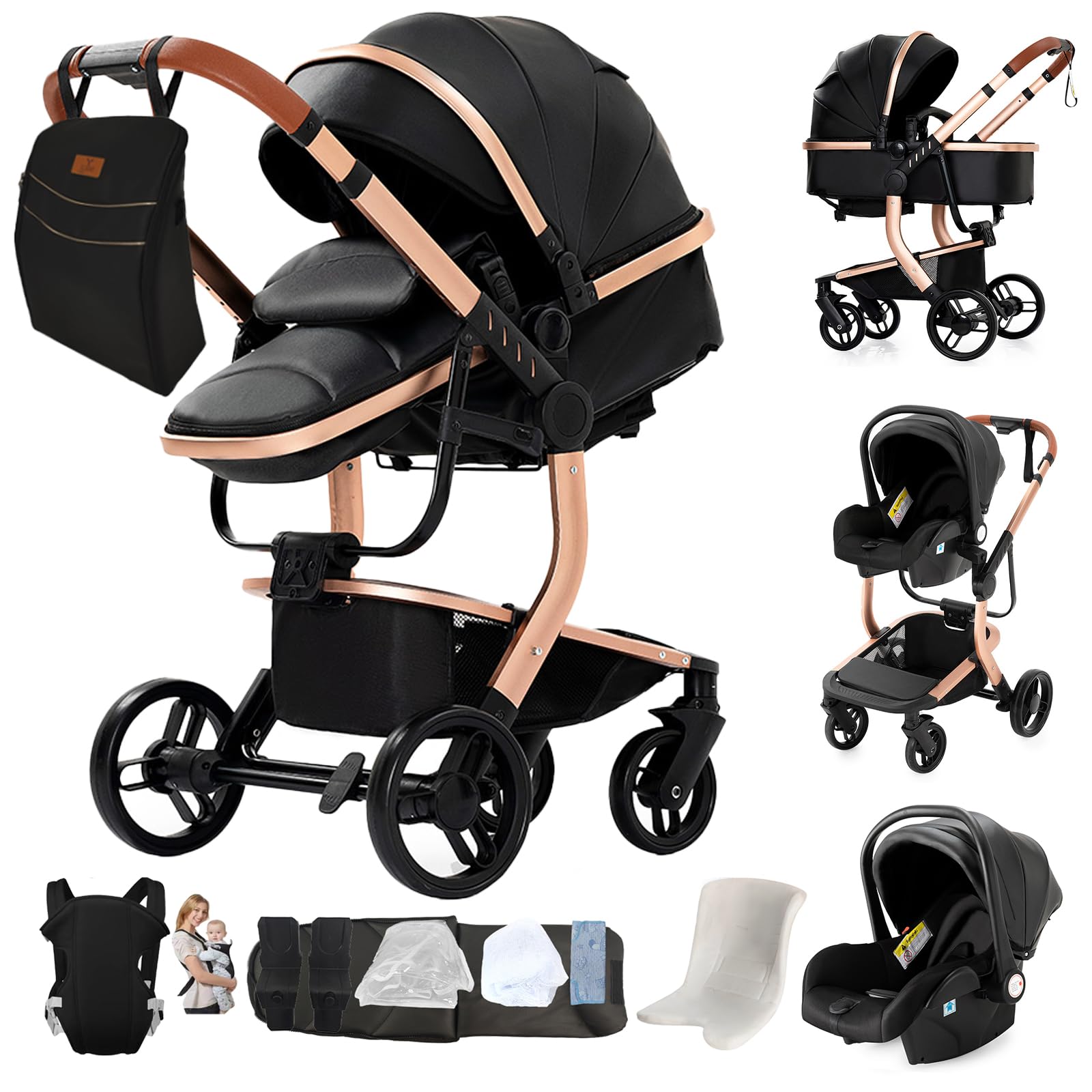 • 【PU Leather & Aluminum Alloy Frame】 Experience stability and practicality with this baby pushchair’s selected PU leather material. The selected material is easy to clean and maintain, offering a comfortable environment for your baby. Combined with the sturdy aluminum alloy frame, this 3 in 1 baby pram offers stability and portability.